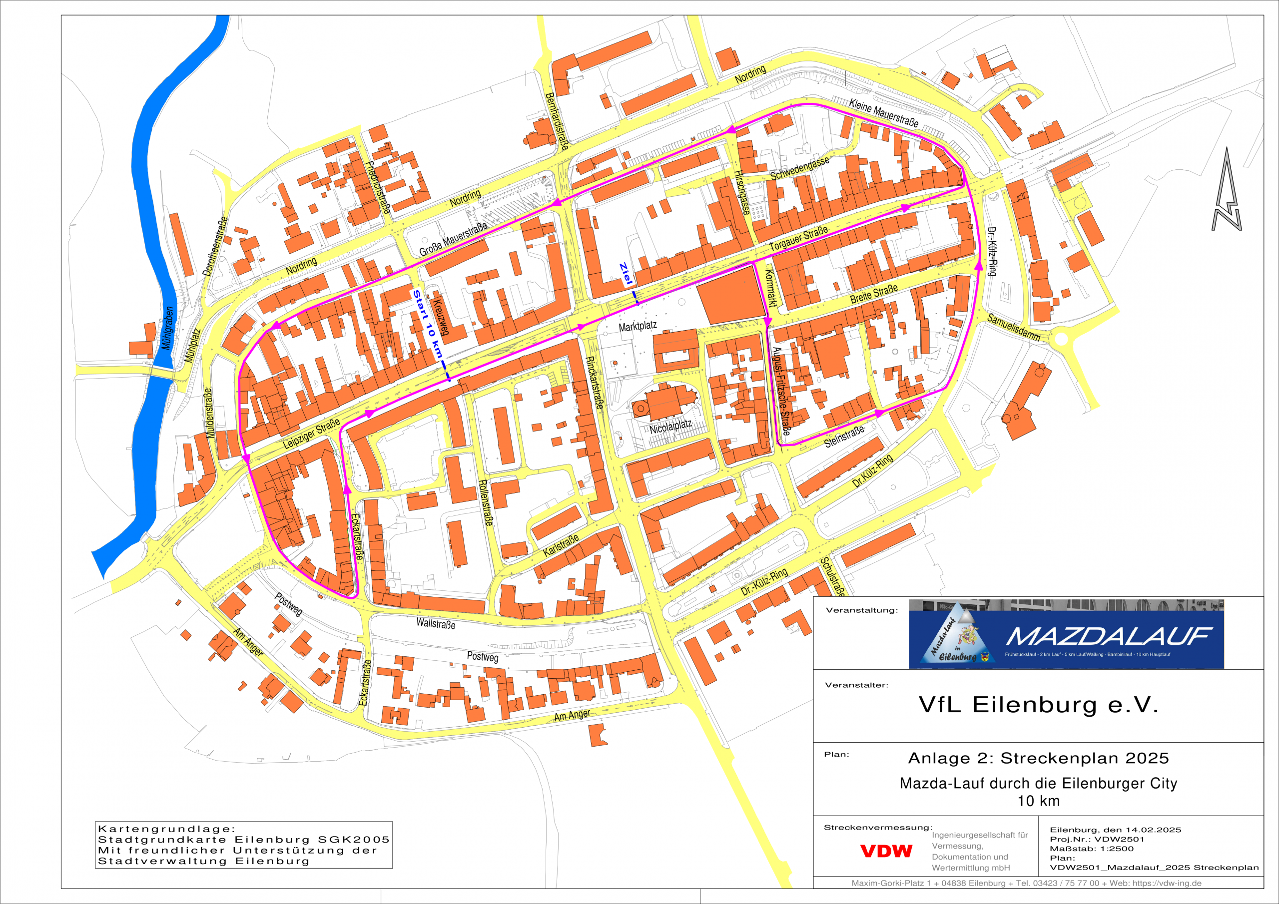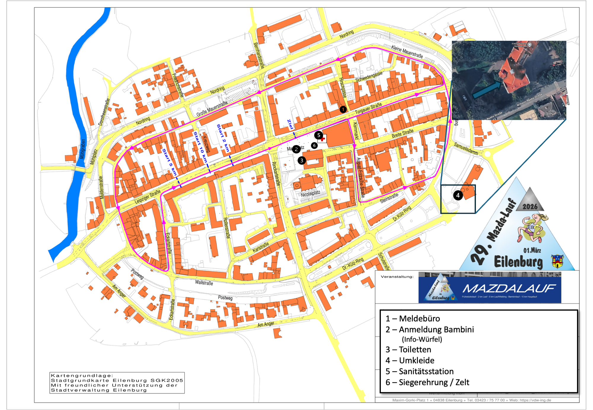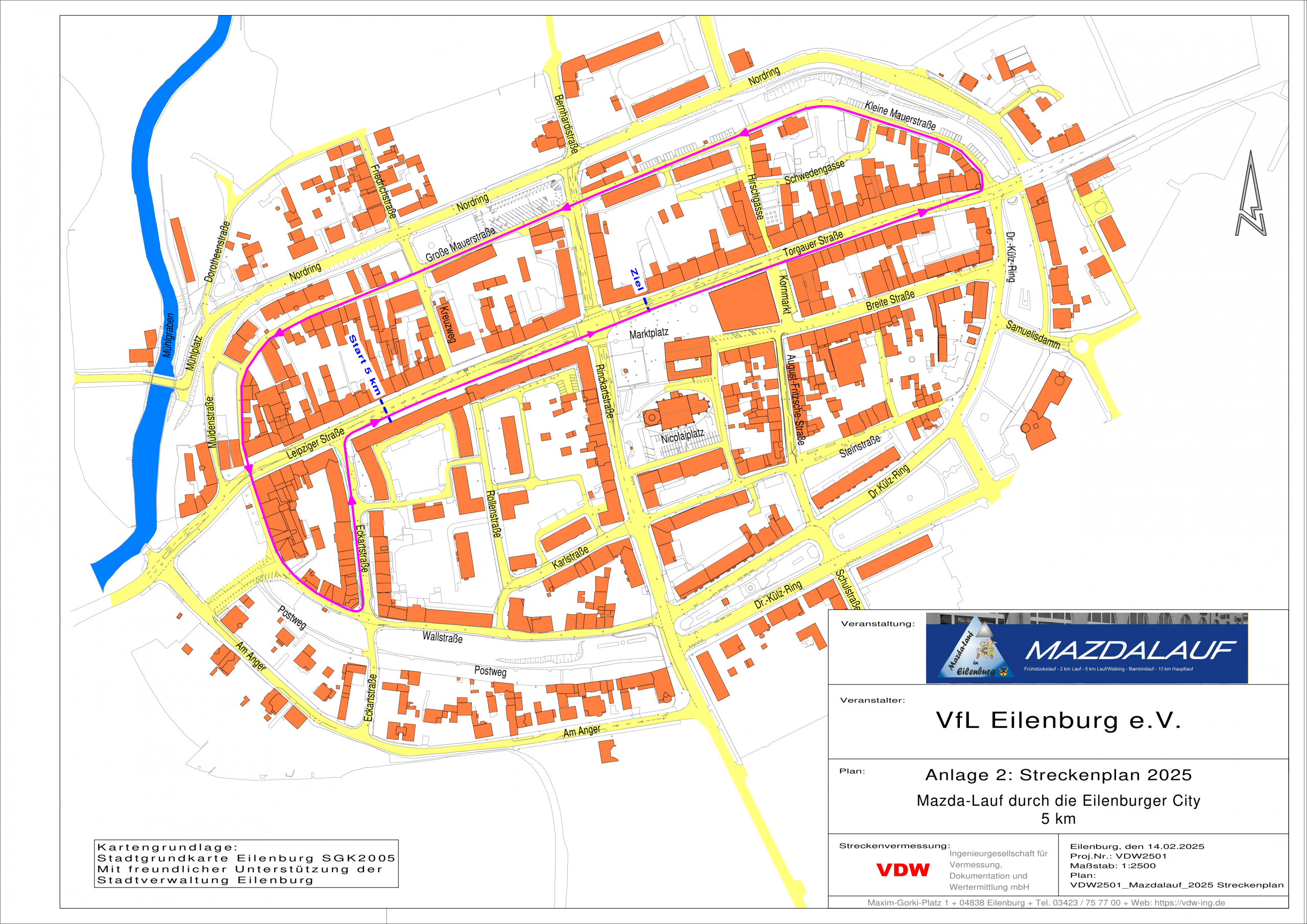 Start 5 km – Ziel – dann 3 Runden über Kleine Mauerstraße – Große Mauerstraße – Wallstraße – Eckartstraße bis Ziel